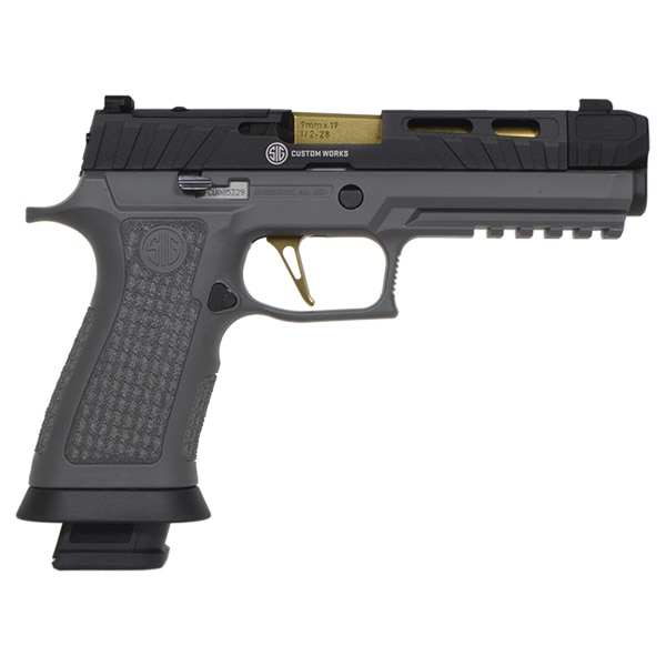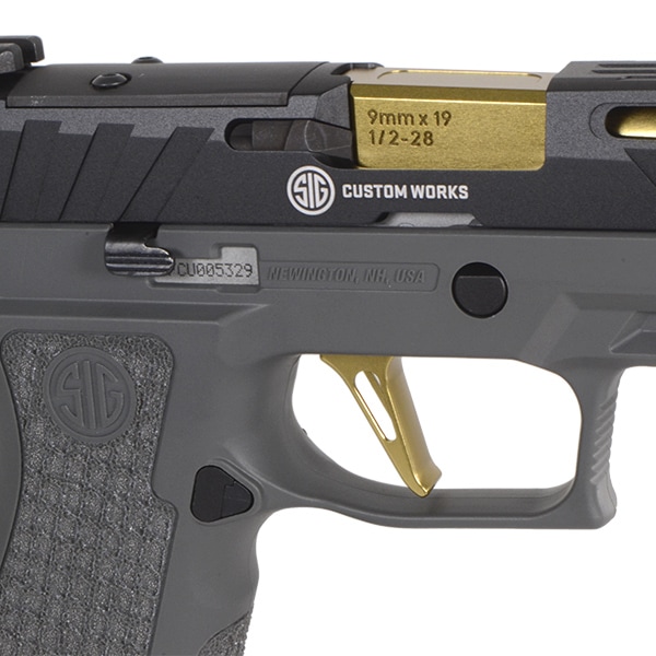 カスタムベースとなる『P320 SPECTRE COMP 』はSIG SAUER社Custom Worksが提供しているSPECTREスライドを再現したアルミCNC製スライドにLaser Engraved X-Seriesタイプグリップに調整可能なフラットスケルトントリガーを採用したカスタムモデルとなります。