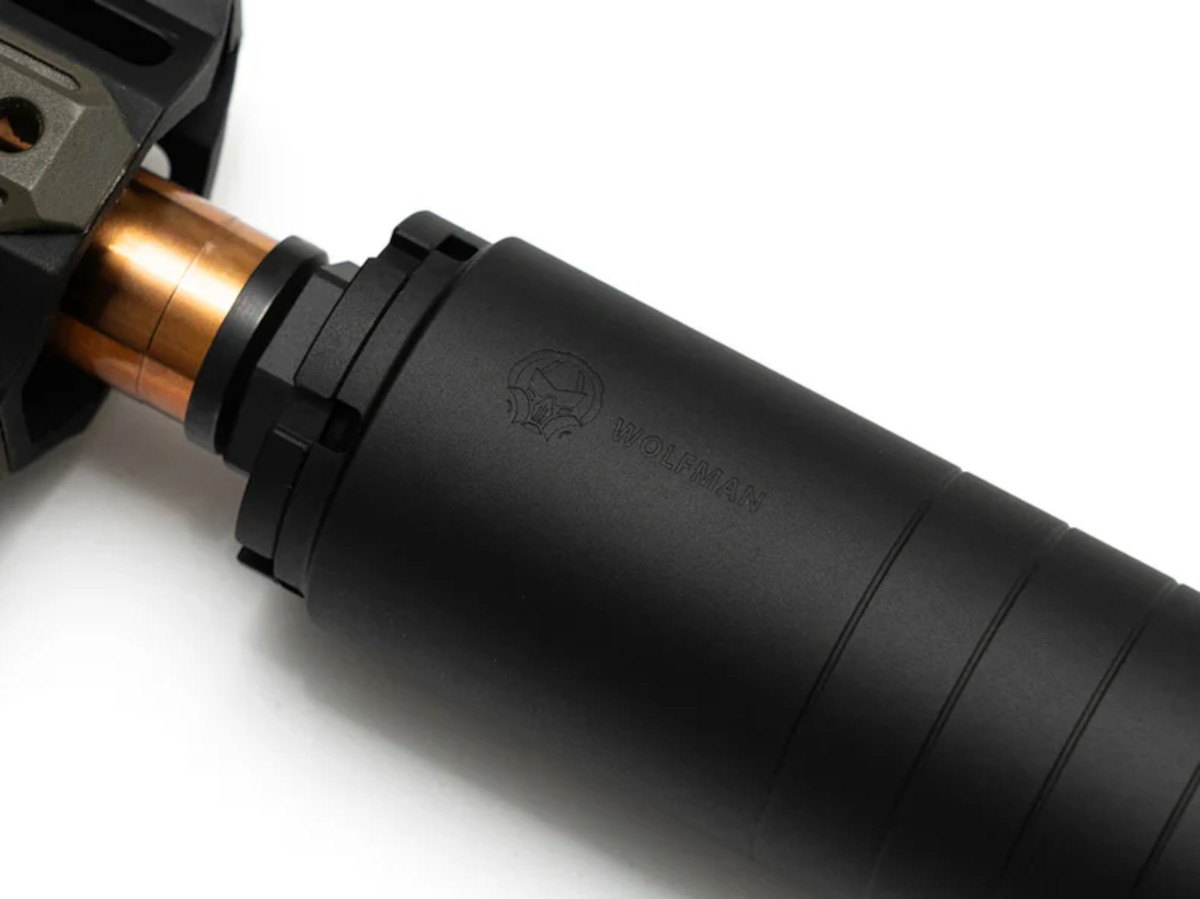PTS Dead Air Wolfman トレーサーは、エアソフト用サブマシンガン、ライフル、ハンドガンに対応した、軽量・モジュラー構造のダイレクトスレッドタイプのモックサプレッサーです。本体は6061アルミからCNC削り出しで製作され、ハードアルマイト仕上げを採用。耐久性と軽量性のバランスに優れ、着脱や構成変更がしやすいモジュラー設計となっています。