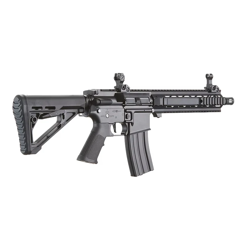 最大の特長は、Nebula II 電子トリガーユニット(ETU)を標準搭載し、トリガー感度や射撃モード、プリコック設定、モーターブレーキなどを細かく設定が可能です。より高い操作性を実現するためにセレクター、マグキャッチなどのコントロールユニットは両利き対応仕様。さらに実銃さながらのビレットスタイルメタルレシーバーを採用するなど、外観・内部ともに徹底的にこだわり抜かれています。高い剛性のあるレシーバーは射撃精度を高め、安定した射撃を楽しむことができます。