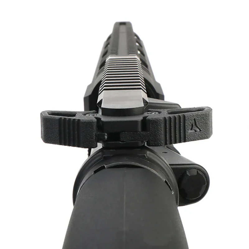 PTS Radian Raptor-LT アンビデクストラス(両利き対応)チャージングハンドルは、Radian Weapons が数年前に発表した革新的な特許取得済みチャージングハンドルの最新モデルです。シャフト部分は6000系アルミニウムを精密加工し、耐久性の高いブラックアルマイト仕上げを採用。左右のウイング(ハンドル)にはアルミフレームをベースに、PTS独自の強化ポリマーをオーバーモールド。強度・軽量性・耐久性のバランスを極限まで高めた設計となっています。手のひらで素早く払う「ブレーディング」操作や指・親指でのチャージングも、利き手・サポートハンドのどちらからでもスムーズに行えます。左右どちらからでも確実に操作できるポジティブラッチ機構を搭載し、表面には滑り止めのセレーション加工を施しています。右側ハンドルは、フォワードアシスト突起を避けるためにわずかに長めに設計されています。