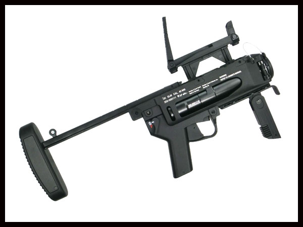 従来のM203シリーズの後継として近年米陸軍に採用されたH&K社製汎用グレネードランチャー『M320』。G36用アッドオングレネードランチャーであるAG36をベースに米陸軍の要求を盛り込んで開発され、M203と同じ40mm口径ながらサイドスイング式の装填方式を採用したことで、より全長の長い弾薬が使用できるようになっています。