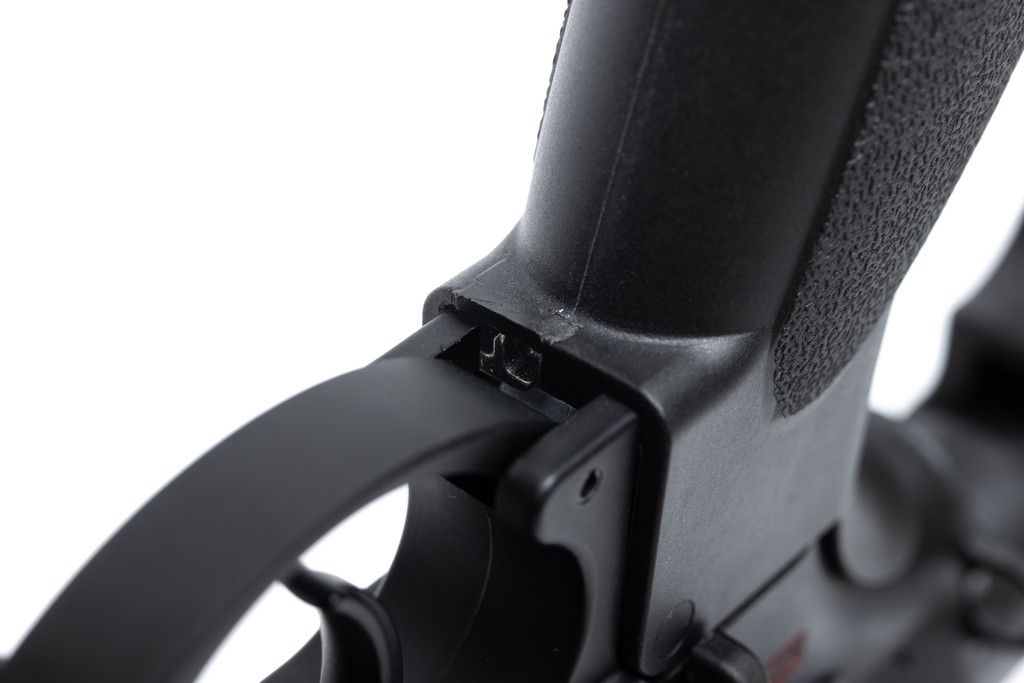 機械式可変プリコッキング機構と併せ、C.A.T.では従来型スイッチよりもセミオート射撃性に優れるマイクロスイッチ式を採用。