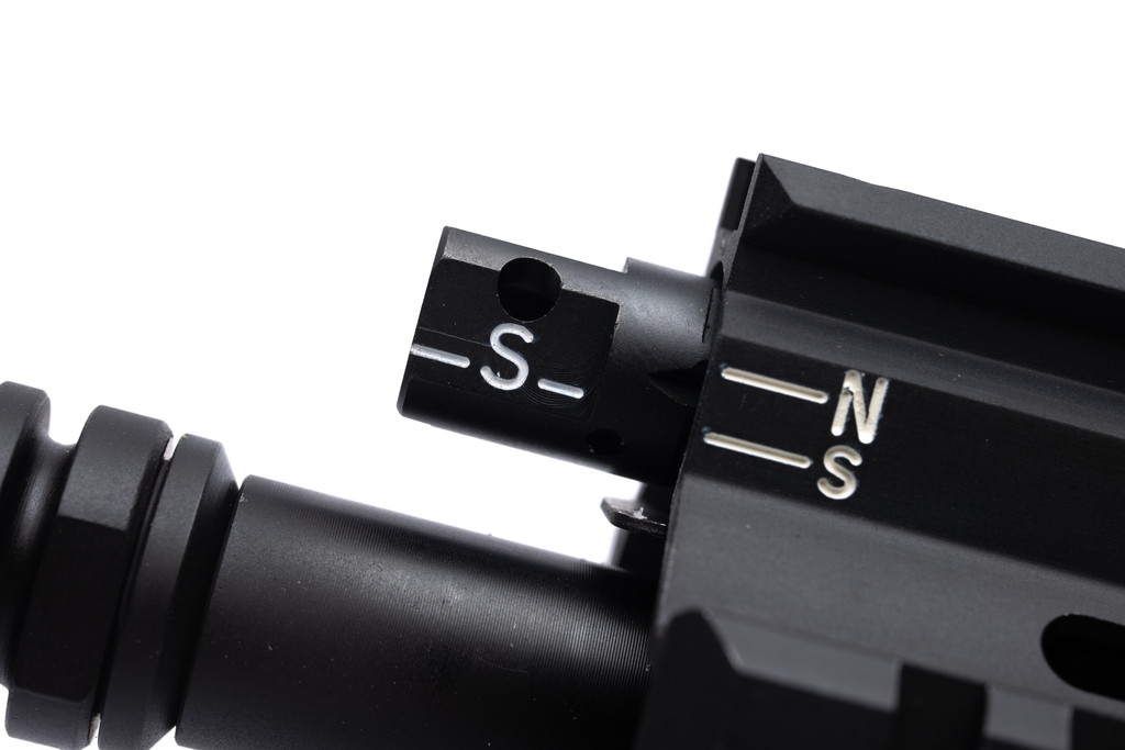 ノブ下部のロック版を押し下げながら回すと実銃同様ガスレギュレーターをサプレッサーモードにすることができます。