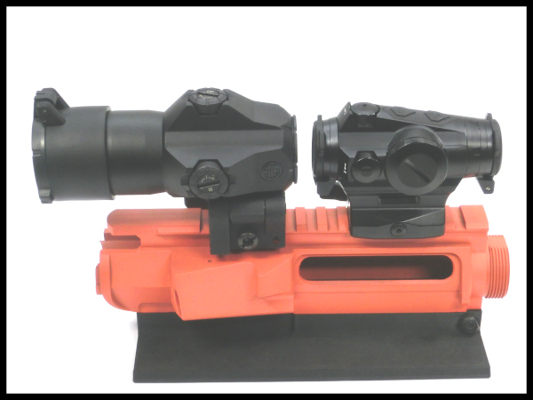 米国/ヨーロッパを拠点とする大手銃器メーカー『SIG SAUER』(シグ・ザウエル/シグサワー)社が製造する実銃用高性能光学照準器シリーズ。ハンドガンのスライドライドを始め、ショットガンやサブマシンガン、アサルトライフルなど、様々な銃器への搭載に対応するマイクロドットサイト『ROMEO4H』と、4倍率の『JULIET4』マグニファイア(倍率ブースター)のセットです。