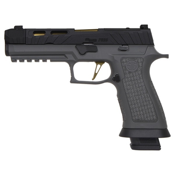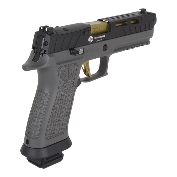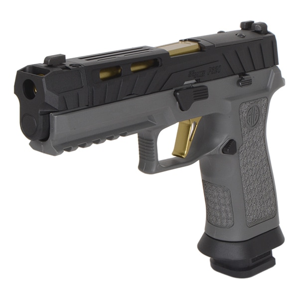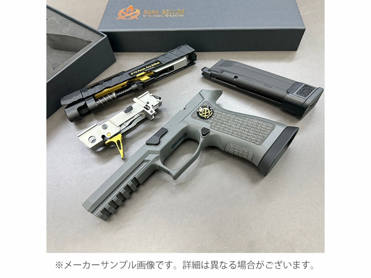 カスタムベースとなる『P320 SPECTRE COMP 』はSIG SAUER社Custom Worksが提供しているSPECTREスライドを再現したアルミCNC製スライドにLaser Engraved X-Seriesタイプグリップに調整可能なフラットスケルトントリガーを採用したカスタムモデルとなります。