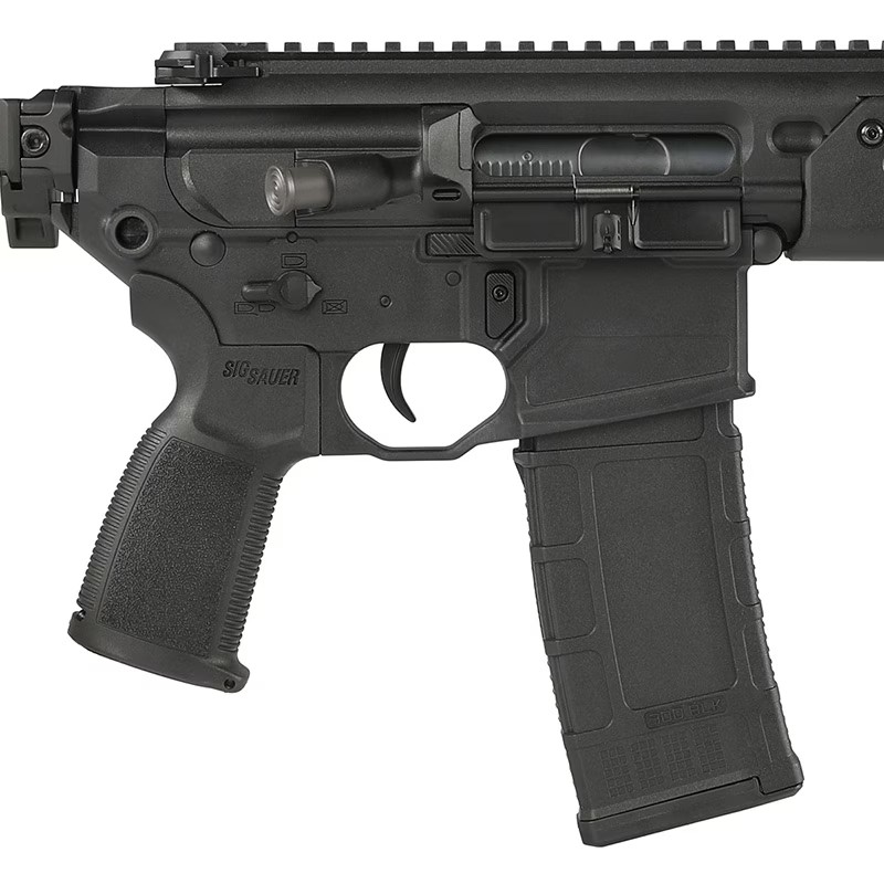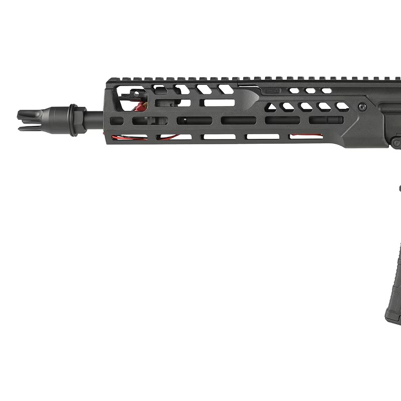 MCX-SPEAR LT は、SIG SauerのMCXプラットフォーム第3世代にあたる最新モデルであり、同社のMCX Virtusシリーズの進化系として2022年に登場しました。「LT」は“Lightweight”を意味し、軽量化と操作性を追求した設計が特徴です。従来モデルに比べ、バレルとハンドガードを刷新し、前後重量バランスや取り回しを向上。大型の一体型トップレールは、スコープやドットサイトのマウント自由度を広げています。