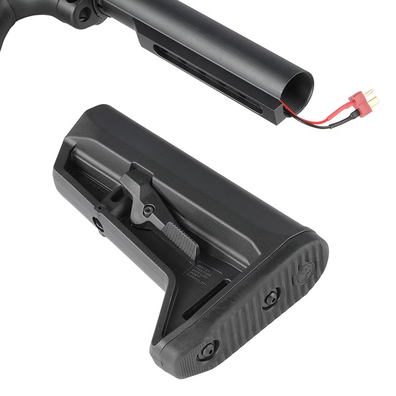 内部メカボックスには6段階プリコッキング、バイナリトリガー(セミオート)、3点バースト(フルオート)などの高機能を搭載。さらに、耐久性を考慮し、スチールギアセット(セクターギア3枚カット)、CNC削り出しのスチール製軸受を採用。
