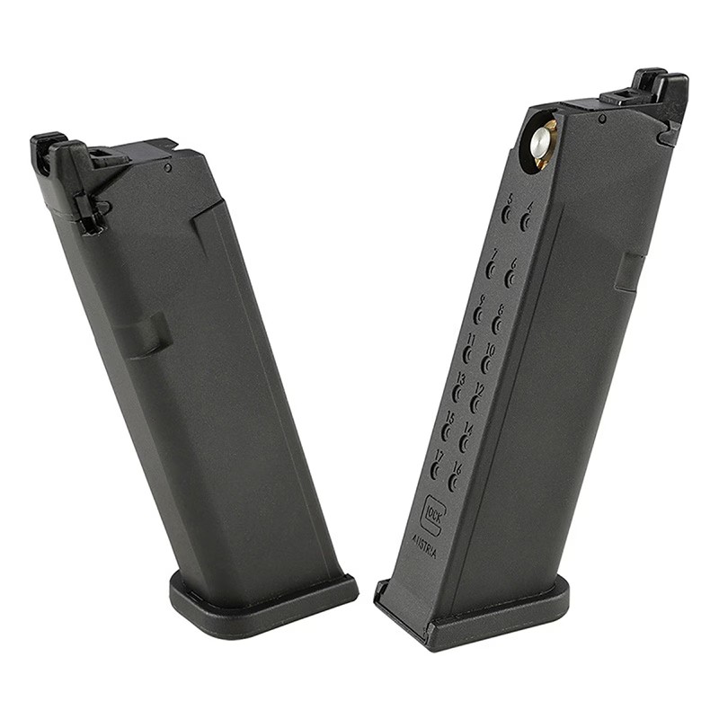 装弾数は17発が標準で、オプションで延長マガジンも使用可能。信頼性の高さ、シンプルな操作性、工具を必要としない分解整備の容易さなどから、長年にわたって第一線の現場で使われ続けています。また、カスタムパーツやホルスターなどのアクセサリーが豊富に存在し、競技用や護身用、趣味用途まで幅広く対応できることも魅力のひとつです。