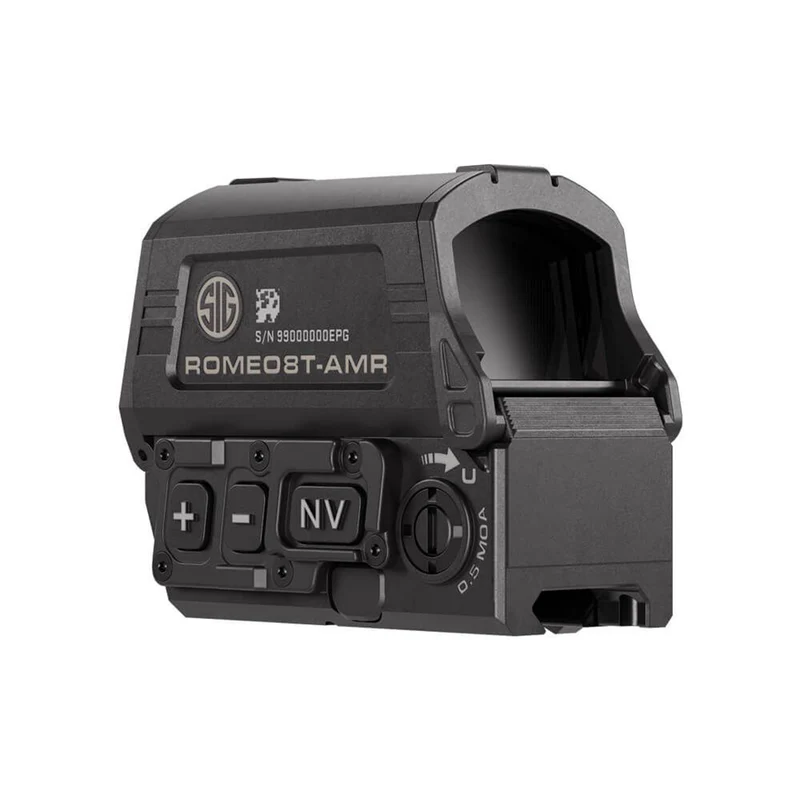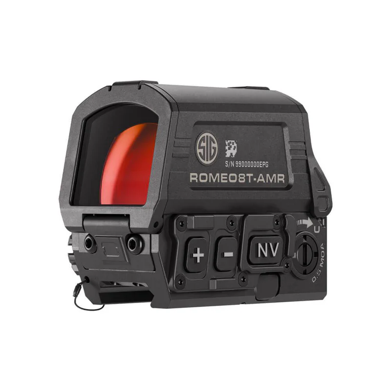 SIG SAUERのオリジナル「ROMEO8T」レッドドットに着想を得た ROMEO8T-AMR™ は、技術の限界に挑みつつ、本体サイズと重量を30%以上削減したハイパフォーマンス光学サイトです。新開発の JULIET3T-AMR™ マイクロマグニファイア と組み合わせることで、SIG SAUER独自の革新的な Automatic Modified Reticle™ 技術が作動。マグニファイアの装着・解除に応じて、ユーザーが選択したレティクル設定へ瞬時に切り替わります。