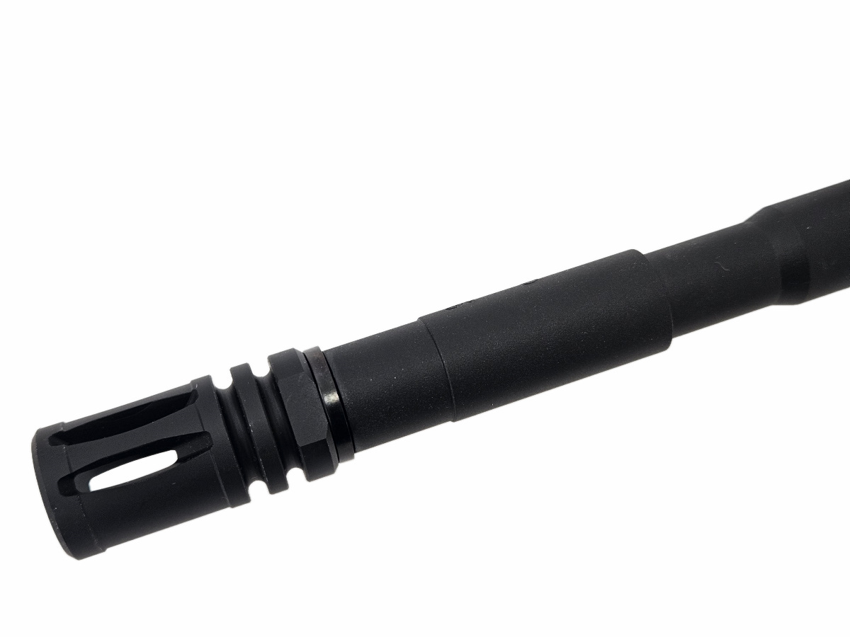 当店オリジナルのフローバルブに交換致します。ノズル先端から1.5mm六角ドライバー(別売り)を差し込んで回すことで発射側のガス流入量を調整でき、初速調整が可能となっております。これによりフィールドレギュレーションに対応した調整や社外製ガスマガジン(外部ソースやCO2)の使用に対して最適なセッティングが可能です。